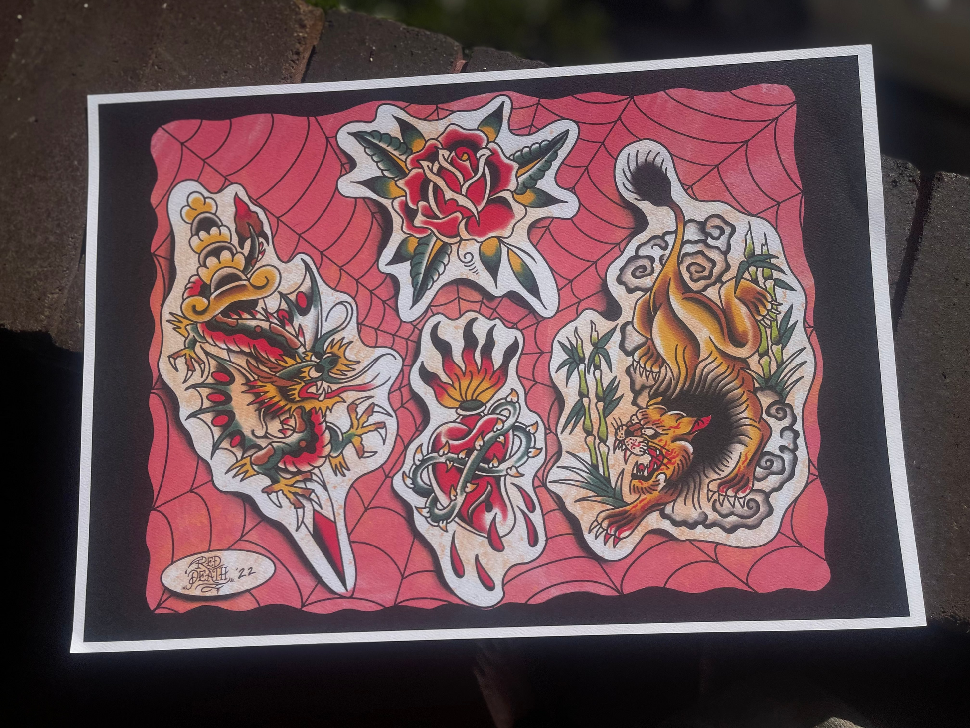 2022 Flash Set, RED - A3 Tattoo Flash Sheet Print