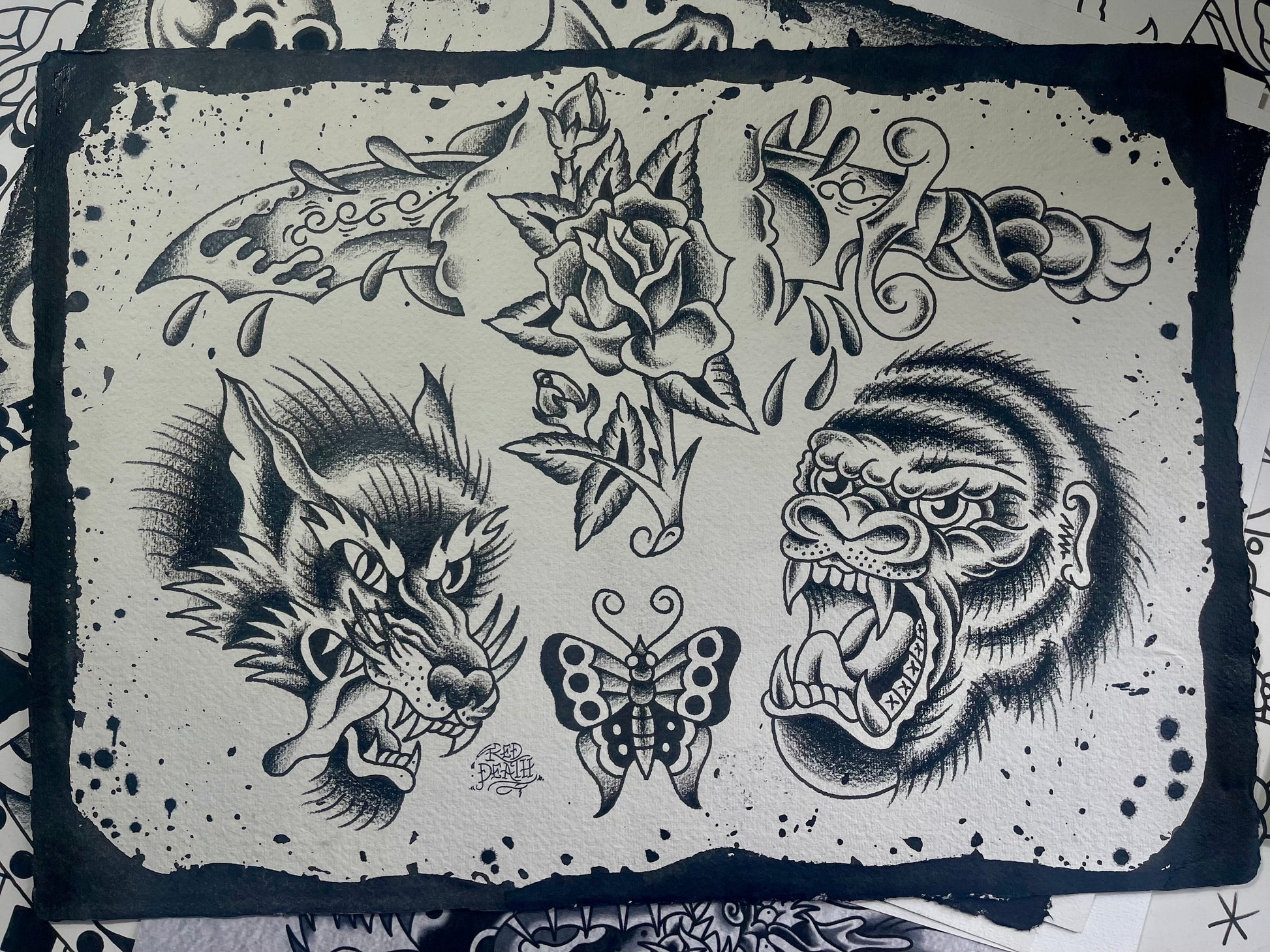 One of a kind original tattoo flash sheet.