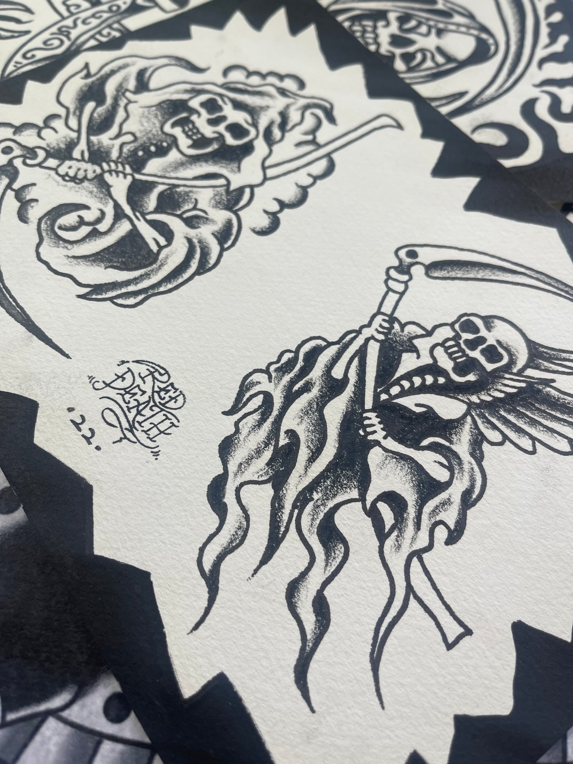 Handmade with pencil, marker and acrylic ink on 200gsm heavyweight textured cotton rag.